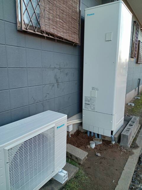 エコキュートのヒートポンプユニット、エアコンで言うと室外機部分から水漏れがあり