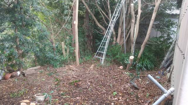大きく育つと伐るのも一苦労、伐った木を捨てるのも家庭では難しいですね。
